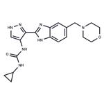 AT-9283 is a broad spectrum kinase inhibitor that potently inhibits Aurora A, Aurora B, JAK2, JAK3, and c-ABL (IC50s = 3, 3, 1.2, 1.1, and 4 nM, respectively). It also potently (IC50 = <1 μM) inhibits many other kinases, including serine/threonine kinases as well as receptor and non-receptor tyrosine kinases. As Aurora kinases have roles in mitosis, inhibitors of these kinases, including AT-9283, have potential in cancer therapy. Consistent with this, AT-9283 is effective in preventing proliferation of cancer cells both in vitro and in vivo and this effect may be enhanced by combination therapy with other chemotherapeutics.