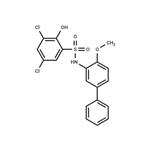 ATP citrate lyase (ACL) catalyzes the synthesis of acetyl-CoA and oxaloacetate using citrate, CoA, and ATP as substrates and Mg2+ as a cofactor. The ACL-dependent synthesis of acetyl-CoA is important for the de novo synthesis of fatty acids and cholesterol. Furthermore, as a key enzyme for linking glucose and lipid metabolism, ACL is thought to contribute to the Warburg effect in cancer cells. BMS 303141 is a cell-permeable, 2-hydroxy-N-arylbenzenesulfonamide that inhibits ACL with an IC50 value of 0.13 μM. At an oral dose of 100 mg/kg/day, BMS 303141 has been reported to reduce weight gain and lower plasma cholesterol, triglycerides, and glucose in a mouse model of hyperlipidemia.