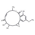 Hypothemycin exhibits antifungal and cytotoxic activity against some tumor cell lines partly attributed to inhibition of Ras-inducible genes. Hypothemycin facilitates the ubiquitinylation process of cyclin D1. Hypothemycin has been identified as a potent and selective inhibitor of threonine/tyrosine-specific kinase, MEK, and other protein kinases that contain a conserved cysteine residue in the ATP-binding site in in vitro studies.