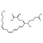 Leukotriene E4 (LTE4) is produced by the action of dipeptidase on LTD4, leaving only the cysteinyl group still attached to the fatty acid backbone. It is one of the constituents of slow-reacting substance of anaphylaxis (SRS-A). LTE4 is considerably less active (8 to 12-fold) than LTC4 in the biological activities characteristic of cysteinyl leukotrienes. Unlike LTC4 and LTD4, LTE4 accumulates in both plasma and urine. Therefore, urinary excretion of LTE4 is often used as an indicator of asthma. In humans, basal levels of LTE4 range from 1-100 pg/mg creatinine. In asthmatic patients, urinary LTE4 levels increase to 80-1,000 pg/mg creatinine.