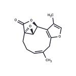 Linderane is a sesquiterpene that has been found in L. aggregata. It inhibits the cytochrome P450 (CYP) isoform CYP2C9 (Ki = 1.26 μM) in an irreversible and NADPH-dependent manner. Linderane decreases phosphoenolpyruvate carboxykinase (Pck1) and glucose-6-phosphatase (G6pc) gene expression, cAMP concentration, and CREB phosphorylation, increases phosphodiesterase 3 (PDE3) activity, and inhibits gluconeogenesis in rat primary hepatocytes. In vivo, linderane (50 mg/kg twice per day) decreases serum and hepatic triglyceride levels, as well as random-fed and fasting blood glucose levels in ob/ob mice.