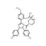 The protein p53, often called the ‘guardian of the genome,’ is a transcription factor that is activated in response to cellular stress (low oxygen levels, heat shock, DNA damage, etc.) and acts to prevent further proliferation of the stressed cell by promoting cell cycle arrest or apoptosis. Its role as a tumor suppressor is evident by the observation that approximately 50% of human tumors have mutated or non-functional p53. Mdm2, a key negative regulator of p53, which is over-expressed in many human tumors, functions by binding to and targeting p53 for proteasomal degradation. Nutlin-3 is a potent inhibitor of p53-Mdm2 interaction. (?)-Nutlin-3 is arbitrarily referred to as enantiomer a because it appears as the first peak from chiral purification of racemic nutlin-3 and its absolute stereocenter assignment is not known. It potently inhibits Mdm2-p53 binding with an IC50 value of 0.09 μM, induces the expression of p53-regulated genes, and exhibits potent antiproliferative activity in cells with functional p53, but not in cells with mutated p53. (?)-Nutlin-3 inhibits the proliferation of exponentially growing human skin and murine fibroblasts with IC50 values of 2.2 and 1.3 μM, respectively, and induces substantial tumor shrinkage in mice expressing LnCaP, 22Rv1 or MHM cancer cell lines when treated orally with a 200 mg/kg dose twice daily for two weeks.