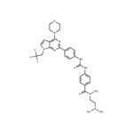 Phosphatidylinositol 3-kinase (PI3K) catalyzes the phosphorylation of the 3' hydroxyl position of PIs to produce PtdIns-(3,4)-P2 and PtdIns-(3,4,5)-P3, important second messengers that modulate the activity of downstream targets Akt and mTOR. Aberrant PI3K/Akt is associated with many human cancers. CAY10626 is a potent, dual PI3Kα/mTOR inhibitor with IC50 values of 0.9 and 0.6 nM for the two respective kinases. In a tumor cell growth inhibition assay, CAY10626 demonstrates IC50 values of <3 and 13 nM for MDA361 (breast) and PC3 (prostate) cancer cell lines, respectively. When administered at 25-50 mg/k to MD361 xenograft mice, phosphorylation of the downstream targets of PI3Kα and mTOR (Akt T308, Akt S473, and S6K) was suppressed, and significant tumor regression was observed.