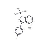 The Src family of non-receptor tyrosine kinases regulate cell adhesion, growth, and differentiation through activation of multiple intracellular signaling pathways. Normally inactive, Src kinases are transiently activated during mitosis and constitutively activated by abnormal mutations. PP2 is a potent, reversible, ATP-competitive, and selective inhibitor of the Src family of protein tyrosine kinases. It inhibits p56lck (IC50 = 4 nM), p59fynT (IC50 = 5 nM), Hck (IC50 = 5 nM), and Src (IC50 = 100 nM). PP2 does not significantly affect the activity of EGFR kinase (IC50 = 480 nM), JAK2 (IC50 > 50 μM), or ZAP-70 (IC50 > 100 μM). PP2 inhibits the activation of focal adhesion kinase as well as its phosphorylation at Tyr577. PP2 also inhibits anti-CD3-stimulated tyrosine phosphorylation of human T-cells with an IC50 value of 600 nM.