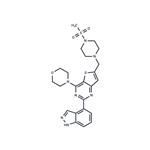 The phosphatidylinositol 3-kinase (PI3K) signaling pathway has central roles in cell growth, development, and survival. GDC-0941 is a potent pan inhibitor of class I catalytic subunits of PI3K, inhibiting p110α, β, δ, and γ with IC50 values of 3, 33, 3, and 75 nM, respectively. It is much less effective against class II-IV isoforms of PI3K and against mTOR. GDC-0941 inhibits the growth of certain types of cancer cells and blocks signaling through PI3K to Akt, both in cells and in vivo.
