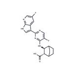 Pimodivir is an inhibitor of influenza virus polymerase basic protein 2 (PB2; KD = <0.003 μM). It also binds to glycogen synthase kinase 3β (GSK3β; Ki = ~1.6 μM) and inhibits the activity of Axl and calcium/calmodulin-dependent protein kinase IIβ (CaMKIIβ) by greater than 50% in a panel of 65 human and rat kinases. Pimodivir decreases the replication of seven adamantine- and neuraminidase inhibitor-resistant strains of influenza virus A (EC50s = <0.15-2.8 nM in a cell-based assay). It increases the antiviral activity of oseltamivir , zanamivir , and favipiravir (T-705; ) with 50% combination index (CI50) values of 0.58, 0.64, and 0.89, respectively, in a cell-based assay. Pimodivir increases survival in a mouse model of intranasal influenza A infection when administered at doses of 1, 3, and 10 mg/kg twice per day.