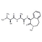 γ-Secretase is a protease complex that cleaves single-pass transmembrane proteins, such as Notch receptors and β-amyloid precursor protein (APP), within the transmembrane domain. Semagacestat is a potent inhibitor of γ-secretase that blocks the production of Aβ38, Aβ40, and Aβ42 with IC50 values of 12.0, 12.1, and 10.9 nM, respectively. It also blocks Notch signaling (IC50 = 14.1 nM). Semagacestat modulates γ-secretase activity in vivo, altering Aβ levels in brain, cerebrospinal fluids, and plasma in a dose-dependent fashion. Although semagacestat does not improve cognitive status in humans, it is useful as a pan γ-secretase inhibitor for research purposes.