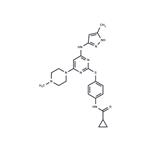 The Aurora kinases (A, B, and C) are a family of serine-threonine kinases that regulate various stages of mitotic function. With significant roles in cell cycle and cell division, Aurora kinase gene amplification and overexpression are linked to tumorigenesis. MK-0457 is a potent pan-Aurora kinase inhibitor but favors Aurora A (Ki = 0.6 nM) over Aurora B (Ki = 18 nM) or Aurora C (Ki = 4.6 nM). It shows selectivity against a panel of more than 190 different protein kinases. MK-0457 effectively inhibits proliferation of several different cell lines of clear cell renal carcinoma (IC50s = <10 μM) and blocks the growth of tumors in a rodent model of cancer (80 mg/kg), inhibiting histone H3 phosphorylation and increasing apoptosis. By depleting Aurora activity, MK-0457 disrupts bipolar spindle formation during mitosis, arresting cell cycle progression at the G2/M phase.