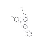 Tyro3, Axl, and Mer are members of the TAM family of receptor tyrosine kinases that have signaling roles in normal and malignant cells. UNC2250 is an inhibitor of Mer kinase activity, blocking the steady-state phosphorylation of endogenous Mer in 697 B-ALL cells with an IC50 value of 9.8 nM. It is selective for Mer over a panel of both tyrosine and serine-threonine kinases, including Tyro3 and Axl. UNC2250 also inhibits ligand-dependent phosphorylation of a chimeric EGFR-Mer protein and blocks colony formation in soft agar cultures of BT-12 rhabdoid tumor and Colo699 NSCLC cell lines. UNC2250 displays good pharmacokinetic properties in mice following intravenous or oral administration.