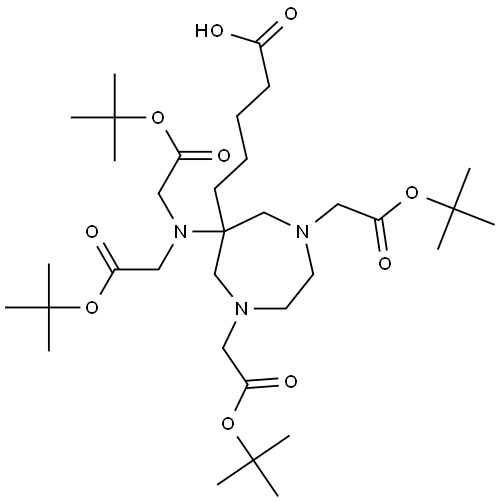- Synonyms: Glycine, N-[6-(4-carboxybutyl)-1,4-bis[2-(1,1-dimethylethoxy)-2-oxoethyl]hexahydro-1H-1,4-diazepin-6-yl]-N-[2-(1,1-dimethylethoxy)-2-oxoethyl]-, 1-(1,1-dimethylethyl) ester 5-(6-(Bis(2-(tert-butoxy)-2-oxoethyl)amino)-1,4-bis(2-(tert-butoxy)-2-oxoethyl)-1,4-diazepan-6-yl)pentanoic acid CAS:1034196-97-8