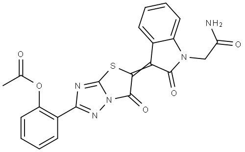 - Synonyms: 2-{(5Z)-5-[1-(2-AMINO-2-OXOETHYL)-2-OXO-1,2-DIHYDRO-3H-INDOL-3-YLIDENE]-6-OXO-5,6-DIHYDRO[1,3]THIAZOLO[3,2-B][1,2,4]TRIAZOL-2-YL}PHENYL ACETATE 1H-Indole-1-acetamide, 3-[2-[2-(acetyloxy)phenyl]-6-oxothiazolo[3,2-b][1,2,4]triazol-5(6H)-ylidene]-2,3-dihydro-2-oxo-