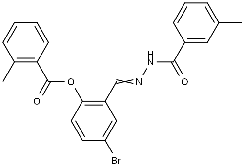 - Synonyms: 4-BROMO-2-(2-(3-METHYLBENZOYL)CARBOHYDRAZONOYL)PHENYL 2-METHYLBENZOATE Benzoic acid, 2-methyl-, 4-bromo-2-[[2-(3-methylbenzoyl)hydrazinylidene]methyl]phenyl ester