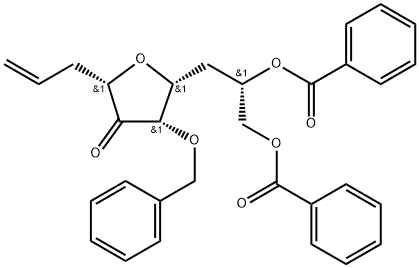 - Synonyms: 4,7-Anhydro-1,2,3,8-tetradeoxy-6-O-(phenylmethyl)-D-gluco-dec-1-en-5-ulose 9,10-dibenzoate (S)-3-((2R,3S,5S)-5-Allyl-3-(benzyloxy)-4-oxotetrahydrofuran-2-yl)propane-1,2-diyl dibenzoate D-gluco-Dec-1-en-5-ulose, 4,7-anhydro-1,2,3,8-tetradeoxy-6-O-(phenylmethyl)-, 9,10-dibenzoate