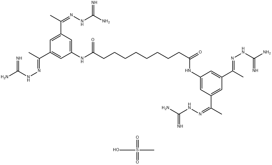 - Product Name:Decanediamide, N1,N10-bis[3,5-bis[1-[2-(aminoiminomethyl)hydrazinylidene]ethyl]phenyl]-, methanesulfonate (1:)