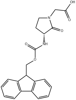 - Synonyms: (3R)-3-[[(9H-Fluoren-9-ylmethoxy)carbonyl]amino]-2-oxo-1-pyrrolidineacetic acid 2-[(3R)-3-({[(9H-fluoren-9-yl)methoxy]carbonyl}amino)-2-oxopyrrolidin-1-yl]acetic acid (R)-3-(Fmoc-amino)-2-oxo-1-pyrrolidineacetic acid