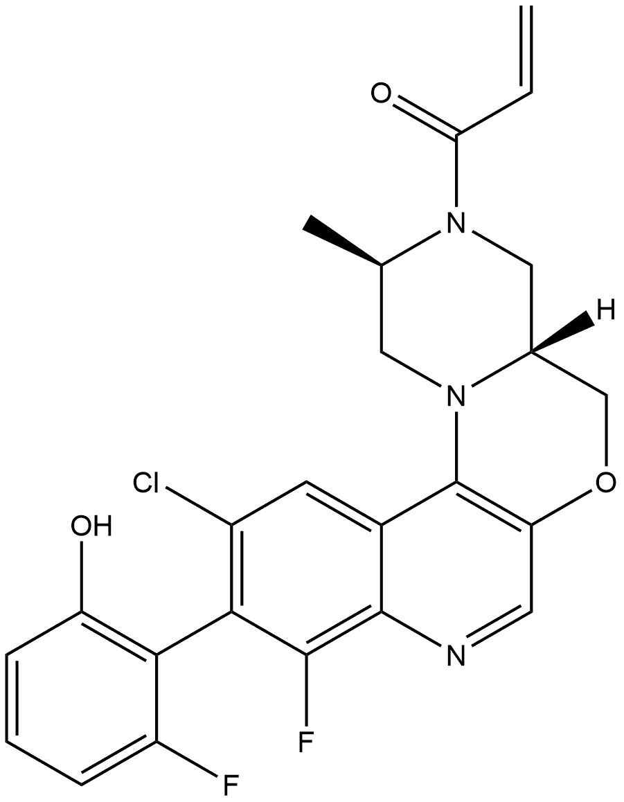 - Synonyms: KRAS G12C inhibitor 17 2-Propen-1-one, 1-[(2R,4aR)-11-chloro-9-fluoro-10-(2-fluoro-6-hydroxyphenyl)-1,2,4a,5-tetrahydro-2-methylpyrazino[1',2':4,5][1,4]oxazino[2,3-c]quinolin-3(4H)-yl]- KRAS G-12C inhibitor 17,KRAS G12C inhibitor 17