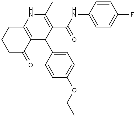 - Synonyms: 4-(4-ETHOXYPHENYL)-N-(4-FLUOROPHENYL)-2-METHYL-5-OXO-1,4,5,6,7,8-HEXAHYDRO-3-QUINOLINECARBOXAMIDE 3-Quinolinecarboxamide, 4-(4-ethoxyphenyl)-N-(4-fluorophenyl)-1,4,5,6,7,8-hexahydro-2-methyl-5-oxo-