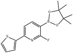 - Synonyms: 2-Fluoro-6-(2-thienyl)pyridine-3-boronic acid pinacol ester Pyridine, 2-fluoro-3-(4,4,5,5-tetramethyl-1,3,2-dioxaborolan-2-yl)-6-(2-thienyl)- 2-Fluoro-3-(4,4,5,5-tetramethyl-1,3,2-dioxaborolan-2-yl)-6-(2-thienyl)pyridine 2-fluoro-3-(4,4,5,5-tetramethyl-1,3,2-dioxaborolan-2-yl)-6-(thiophen-2-yl)pyridine