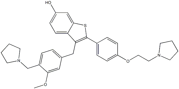 - Product Name:6-hydroxy-3-(3-methoxy-4-((1-pyrrolidinyl)methyl)benzyl)-2-(4-(2-(1-pyrrolidinyl)ethoxy)phenyl)benzo(b)thiophene