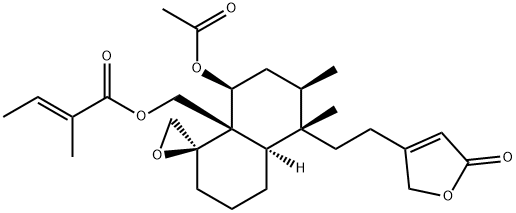 - Synonyms: Ajugacumbin A 2-Butenoic acid, 2-methyl-, [(1R,4aR,5S,6R,8S,8aR)-8-(acetyloxy)-5-[2-(2,5-dihydro-5-oxo-3-furanyl)ethyl]octahydro-5,6-dimethylspiro[naphthalene-1(2H),2'-oxiran]-8a-yl]methyl ester, (2E)-