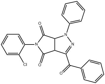 - Synonyms: 3-benzoyl-5-(2-chlorophenyl)-1-phenyl-3a,6a-dihydropyrrolo[3,4-c]pyrazole-4,6-dione Pyrrolo[3,4-c]pyrazole-4,6(1H,5H)-dione, 3-benzoyl-5-(2-chlorophenyl)-3a,6a-dihydro-1-phenyl- 3-BENZOYL-5-(2-CHLOROPHENYL)-1-PHENYL-3A,6A-DIHYDROPYRROLO[3,4-C]PYRAZOLE-4,6(1H,5H)-DIONE