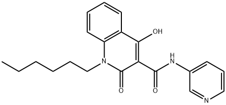 - Synonyms: 3-Quinolinecarboxamide, 1-hexyl-1,2-dihydro-4-hydroxy-2-oxo-N-3-pyridinyl- 1-HEXYL-4-HYDROXY-2-OXO-N-(3-PYRIDINYL)-1,2-DIHYDRO-3-QUINOLINECARBOXAMIDE