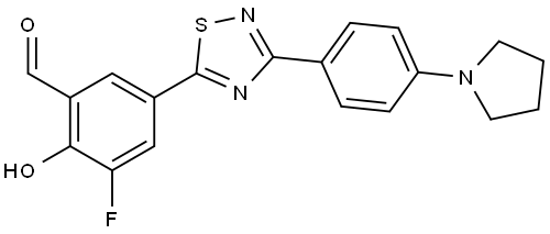 - Synonyms: Benzaldehyde, 3-fluoro-2-hydroxy-5-[3-[4-(1-pyrrolidinyl)phenyl]-1,2,4-thiadiazol-5-yl]-
