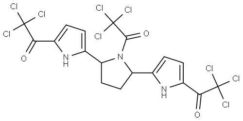 - Synonyms: 2,2,2-TRICHLORO-1-(5-{1-(TRICHLOROACETYL)-5-[5-(TRICHLOROACETYL)-1H-PYRROL-2-YL]-2-PYRROLIDINYL}-1H-PYRROL-2-YL)ETHANONE Ethanone, 1,1′-[[1-(2,2,2-trichloroacetyl)-2,5-pyrrolidinediyl]di-1H-pyrrole-5,2-diyl]bis[2,2,2-trichloro-