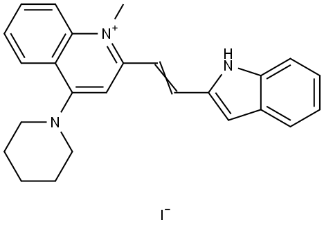 - Synonyms: Quinolinium, 2-?[2-?(1H-?indol-?2-?yl)?ethenyl]?-?1-?methyl-?4-?(1-?piperidinyl)?-?, iodide (1:1)