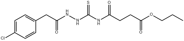 - Synonyms: propyl 4-[({2-[(4-chlorophenyl)acetyl]hydrazino}carbonothioyl)amino]-4-oxobutanoate Benzeneacetic acid, 4-chloro-, 2-[[(1,4-dioxo-4-propoxybutyl)amino]thioxomethyl]hydrazide