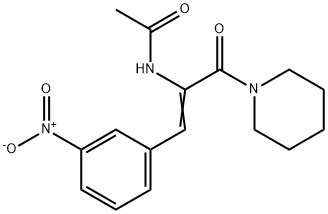 - Synonyms: N-[2-(3-nitrophenyl)-1-(1-piperidinylcarbonyl)vinyl]acetamide N-[(1Z)-1-(3-nitrophenyl)-3-oxo-3-(piperidin-1-yl)prop-1-en-2-yl]acetamide Acetamide, N-[2-(3-nitrophenyl)-1-(1-piperidinylcarbonyl)ethenyl]-