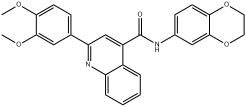 - Synonyms: N-(2,3-dihydro-1,4-benzodioxin-6-yl)-2-(3,4-dimethoxyphenyl)quinoline-4-carboxamide 4-Quinolinecarboxamide, N-(2,3-dihydro-1,4-benzodioxin-6-yl)-2-(3,4-dimethoxyphenyl)-
