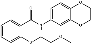 - Synonyms: N-(2,3-dihydro-1,4-benzodioxin-6-yl)-2-(2-methoxyethylsulfanyl)benzamide Benzamide, N-(2,3-dihydro-1,4-benzodioxin-6-yl)-2-[(2-methoxyethyl)thio]-