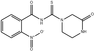 - Synonyms: 2-nitro-N-[(3-oxo-1-piperazinyl)carbonothioyl]benzamide 2-nitro-N-(3-oxopiperazine-1-carbothioyl)benzamide Benzamide, 2-nitro-N-[(3-oxo-1-piperazinyl)thioxomethyl]-