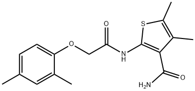 - Synonyms: 2-[[2-(2,4-dimethylphenoxy)acetyl]amino]-4,5-dimethylthiophene-3-carboxamide 3-Thiophenecarboxamide, 2-[[2-(2,4-dimethylphenoxy)acetyl]amino]-4,5-dimethyl-