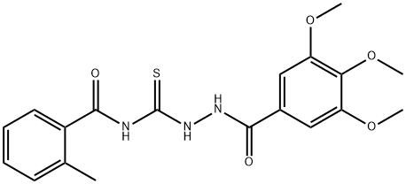 - Synonyms: 2-methyl-N-{[2-(3,4,5-trimethoxybenzoyl)hydrazino]carbonothioyl}benzamide 2-methyl-N-({2-[(3,4,5-trimethoxyphenyl)carbonyl]hydrazinyl}carbonothioyl)benzamide Benzoic acid, 3,4,5-trimethoxy-, 2-[[(2-methylbenzoyl)amino]thioxomethyl]hydrazide