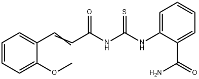 - Synonyms: 2-({[(2E)-3-(2-methoxyphenyl)prop-2-enoyl]carbamothioyl}amino)benzamide 2-[({[3-(2-methoxyphenyl)acryloyl]amino}carbonothioyl)amino]benzamide Benzamide, 2-[[[[3-(2-methoxyphenyl)-1-oxo-2-propen-1-yl]amino]thioxomethyl]amino]-