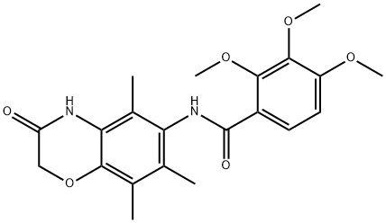 - Synonyms: 2,3,4-trimethoxy-N-(5,7,8-trimethyl-3-oxo-3,4-dihydro-2H-1,4-benzoxazin-6-yl)benzamide Benzamide, N-(3,4-dihydro-5,7,8-trimethyl-3-oxo-2H-1,4-benzoxazin-6-yl)-2,3,4-trimethoxy-