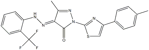 - Product Name:5-methyl-2-[4-(4-methylphenyl)-1,3-thiazol-2-yl]-4-{[2-(trifluoromethyl)phenyl]hydrazono}-2,4-dihydro-3H-pyrazol-3-one