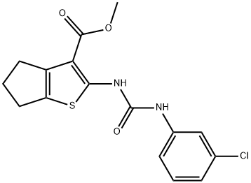 - Synonyms: methyl 2-({[(3-chlorophenyl)amino]carbonyl}amino)-5,6-dihydro-4H-cyclopenta[b]thiophene-3-carboxylate 4H-Cyclopenta[b]thiophene-3-carboxylic acid, 2-[[[(3-chlorophenyl)amino]carbonyl]amino]-5,6-dihydro-, methyl ester