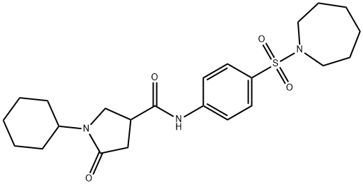 - Synonyms: N-[4-(azepan-1-ylsulfonyl)phenyl]-1-cyclohexyl-5-oxopyrrolidine-3-carboxamide 3-Pyrrolidinecarboxamide, 1-cyclohexyl-N-[4-[(hexahydro-1H-azepin-1-yl)sulfonyl]phenyl]-5-oxo-