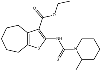 - Synonyms: ethyl 2-(2-methylpiperidine-1-carbothioamido)-5,6,7,8-tetrahydro-4H-cyclohepta[b]thiophene-3-carboxylate 4H-Cyclohepta[b]thiophene-3-carboxylic acid, 5,6,7,8-tetrahydro-2-[[(2-methyl-1-piperidinyl)thioxomethyl]amino]-, ethyl ester