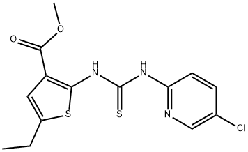 - Synonyms: methyl 2-(3-(5-chloropyridin-2-yl)thioureido)-5-ethylthiophene-3-carboxylate 3-Thiophenecarboxylic acid, 2-[[[(5-chloro-2-pyridinyl)amino]thioxomethyl]amino]-5-ethyl-, methyl ester
