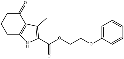 - Synonyms: 2-phenoxyethyl 3-methyl-4-oxo-4,5,6,7-tetrahydro-1H-indole-2-carboxylate 1H-Indole-2-carboxylic acid, 4,5,6,7-tetrahydro-3-methyl-4-oxo-, 2-phenoxyethyl ester