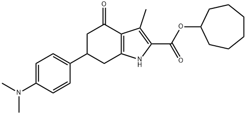 - Synonyms: cycloheptyl 6-(4-(dimethylamino)phenyl)-3-methyl-4-oxo-4,5,6,7-tetrahydro-1H-indole-2-carboxylate 1H-Indole-2-carboxylic acid, 6-[4-(dimethylamino)phenyl]-4,5,6,7-tetrahydro-3-methyl-4-oxo-, cycloheptyl ester