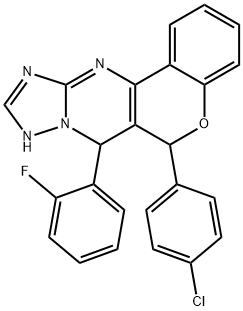 - Synonyms: 6-(4-chlorophenyl)-7-(2-fluorophenyl)-7,9-dihydro-6H-chromeno[4,3-d][1,2,4]triazolo[1,5-a]pyrimidine 6H-[1]Benzopyrano[4,3-d][1,2,4]triazolo[1,5-a]pyrimidine, 6-(4-chlorophenyl)-7-(2-fluorophenyl)-7,9-dihydro- 6-(4-CHLOROPHENYL)-7-(2-FLUOROPHENYL)-7,12-DIHYDRO-6H-CHROMENO[4,3-D][1,2,4]TRIAZOLO[1,5-A]PYRIMIDINE