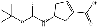 - Synonyms: (4R)-4-{[(tert-butoxy)carbonyl]amino}cyclopent-1-ene-1-carboxylic acid (R)-4-((tert-butoxycarbonyl)amino)cyclopent-1-ene-1-carboxylic acid 1-Cyclopentene-1-carboxylic acid, 4-[[(1,1-dimethylethoxy)carbonyl]amino]-, (4R)-