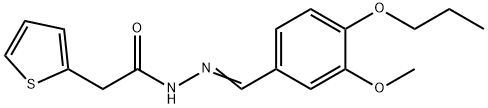 - Synonyms: N-[(E)-(3-methoxy-4-propoxyphenyl)methylideneamino]-2-thiophen-2-ylacetamide 2-Thiopheneacetic acid, 2-[(3-methoxy-4-propoxyphenyl)methylene]hydrazide
