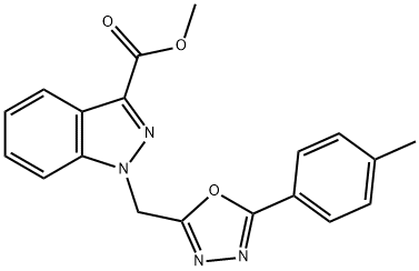 - Synonyms: methyl 1-[[5-(4-methylphenyl)-1,3,4-oxadiazol-2-yl]methyl]indazole-3-carboxylate 1H-Indazole-3-carboxylic acid, 1-[[5-(4-methylphenyl)-1,3,4-oxadiazol-2-yl]methyl]-, methyl ester