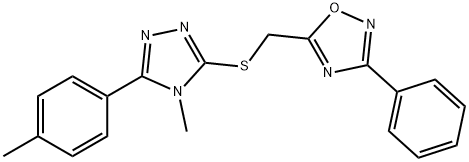 - Synonyms: 5-[[4-methyl-5-(4-methylphenyl)-1,2,4-triazol-3-yl]sulfanylmethyl]-3-phenyl-1,2,4-oxadiazole 1,2,4-Oxadiazole, 5-[[[4-methyl-5-(4-methylphenyl)-4H-1,2,4-triazol-3-yl]thio]methyl]-3-phenyl-